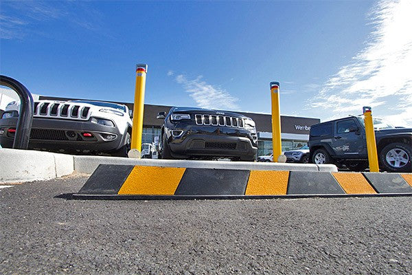 An economical one piece rubber wheel stop with hi-vis yellow panels. Manufactured from recycled materials with dimensions that comply to AS/NZS 2890.1:2004. Suited to use in factories, warehouses and car parks etc. Comes complete with fixings